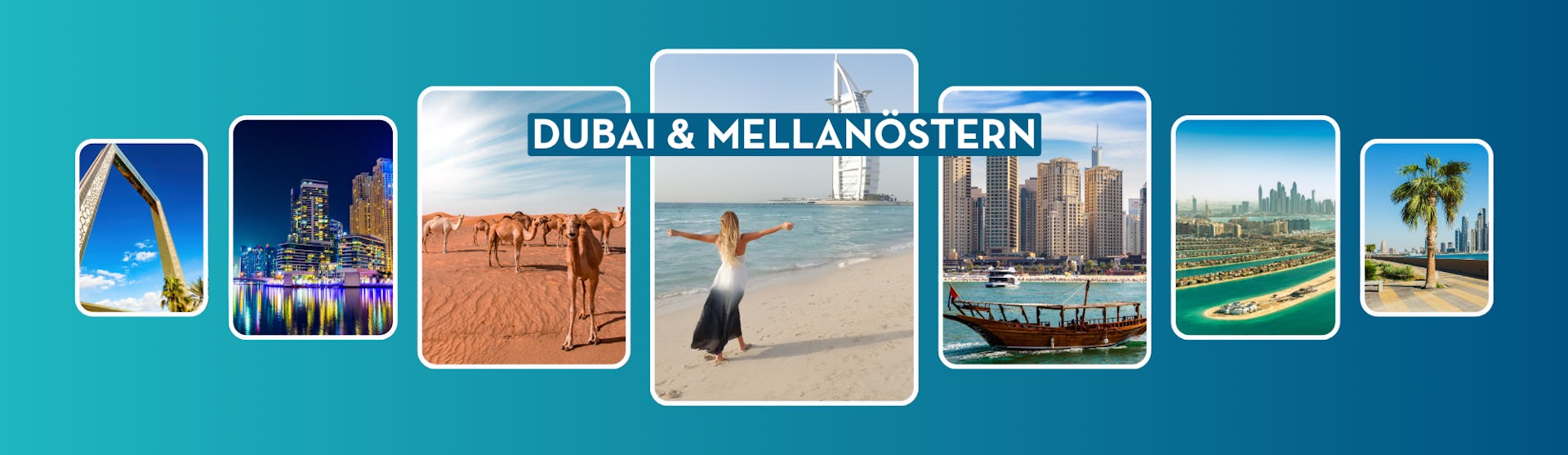 Dubai är både en stad och ett emirat i Förenade Arabemiraten. I staden bor cirka 2,5 miljoner invånare, och är känd för sina grandiosa byggnader. Upplev det femstjärniga hotellet Burj Al Arab och världens högsta byggnad på otroliga 828 meter, Burj Khalifa. Ett berömt landmärke i Dubai är Palm Jumeirah, den trädformade ö som byggts upp i havet och som tro det eller ej, syns ända från månen. På den konstgjorda ön finns hotell, villor och flerbostadshus.