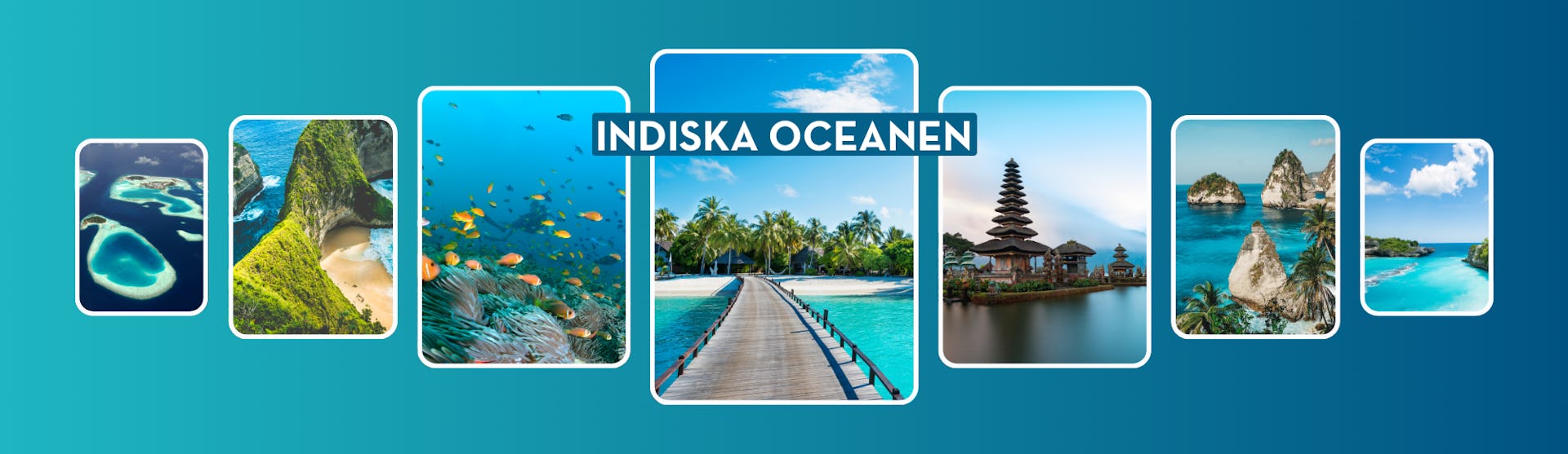 Indiska Oceanens öar är fantastiska att besöka genom en kryssning. Tropiska paradis som Maldiverna, Mauritius och Seychellerna men också Madagaskar, Indonesien och Sri Lanka är en semester för livet! Glid fram på ett lyxfartyg och gå iland vid turkost vatten och kritvita, palmkantade stränder så låg ögat når. Gör dig redo för romantiska solnedgångar och en värld lång ifrån vardagen. I Indiska Oceanen finns det fantastiska rutter där flera startar i Indien och går via Sri Lanka till Maldiverna. Det finns även kryssningar som startar i Australien eller Nya Zealand. Kryssningarna är från 7 dagar för envägskryssningar och vanligtvis från 14 eller längre dagar vid tur och retur till samma avresehamn.