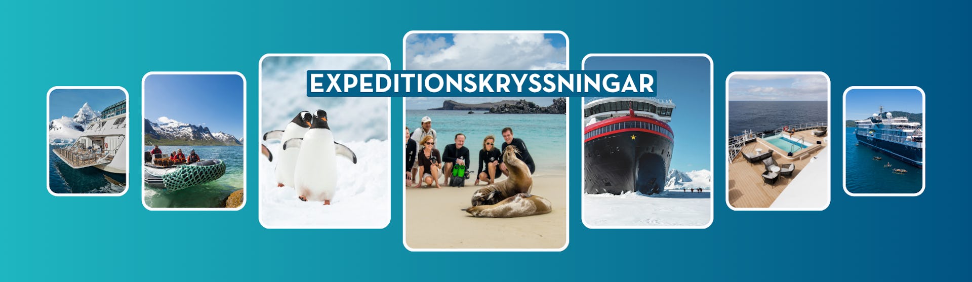 Det blir alltmer populärt att åka på expeditionskryssningar till avlägsna destinationer som tidigare varit nästintill omöjliga att nå för turister. Expeditionsresor till exempelvis exotiska Galapagosöarna eller till vilda Antarktis lockar resenärer som är intresserade av att komma den orörda naturen och djurlivet nära. Det är ofta lyxrederier som erbjuder expeditionskryssningar ombord på sina mindre expeditionsfartyg, som ger en intim och lyxig upplevelse på dessa avlägsna platser i världen. Expeditionskryssningar har vanligtvis ganska få avgångar om året. Äventyrslystna resenärer kan också åka på expeditionskryssningar till Svalbard, en otrolig upplevelse där du får utforska en sagolik värld av glaciärer, fjordar och ett spännande djurliv.