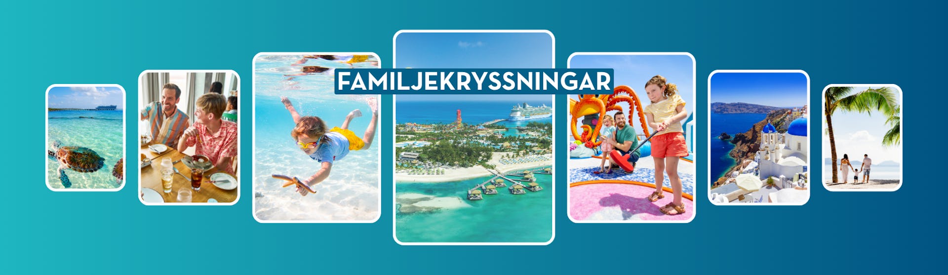 Familjevänliga kryssningsfartyg utgör den perfekta semestern; här finns alltid en mängd aktiviteter och underhållning för barn och tonåringar. Det finns interaktiva vattenparker på däck med fartfyllda rutschbanor, spelarkader, roliga sporter, häftiga bilsimulatorer, biograf, äventyrsbanor, trampolin, Go-cart, zip-line, repbana och klättervägg och mycket mer beroende på vilket rederi du åker med.