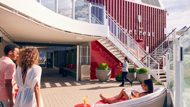 Med ett exklusivt poolområde, egen svitrestaurang och hög servicegrad påminner upplevelsen till stor del om den på mindre kryssningsfartyg. Den stora skillnaden ligger i allt som väntar utanför det avskilda svitområdet. På andra sidan lockar påkostade shower, hisnande attraktioner för alla åldrar och restaurangupplevelser från hela världen.
