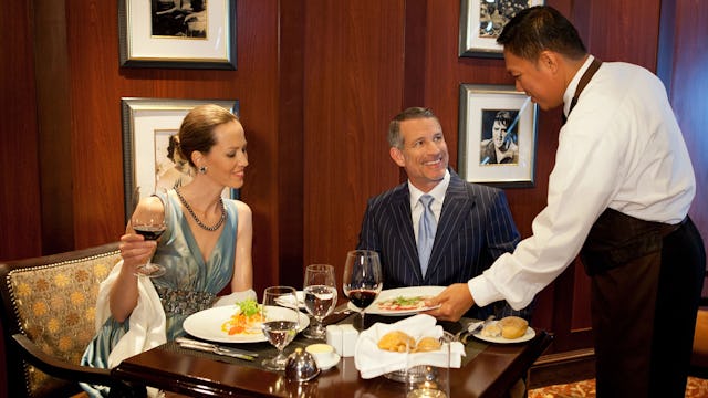 Azamara är kända för sin gourmetmat. Oavsett om du föredrar en 5-rättersmiddag, en lättare lunch eller ett par drinkar i baren ingår upplevelsen i kryssningsbiljetten.