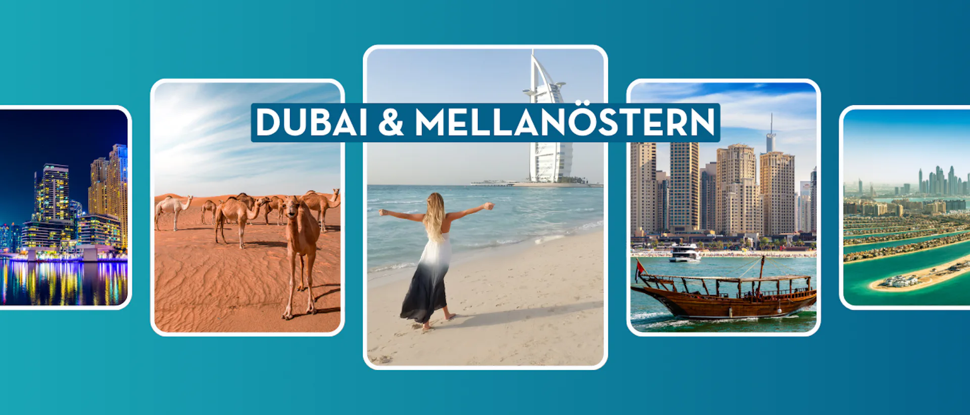 Dubai är både en stad och ett emirat i Förenade Arabemiraten. I staden bor cirka 2,5 miljoner invånare, och är känd för sina grandiosa byggnader. Upplev det femstjärniga hotellet Burj Al Arab och världens högsta byggnad på otroliga 828 meter, Burj Khalifa. Ett berömt landmärke i Dubai är Palm Jumeirah, den trädformade ö som byggts upp i havet och som tro det eller ej, syns ända från månen. På den konstgjorda ön finns hotell, villor och flerbostadshus.