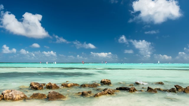 Dykarnas paradisö, med ett enormt fiskebestånd och kristallklart vatten där de många olika fiskarterna flockas kring korallreven. Bonaires huvudstad heter Kralendijk och ön tillhör de Nederländska Antillerna tillsammans med Aruba och Curacao. Ön har både grönska och kargt landskap och i de södra delarna kan ni skåde de vita salthögskullarna. Något att inte missa är otroliga Pink Beach som fått sin unika färg från krossade snäckskal.