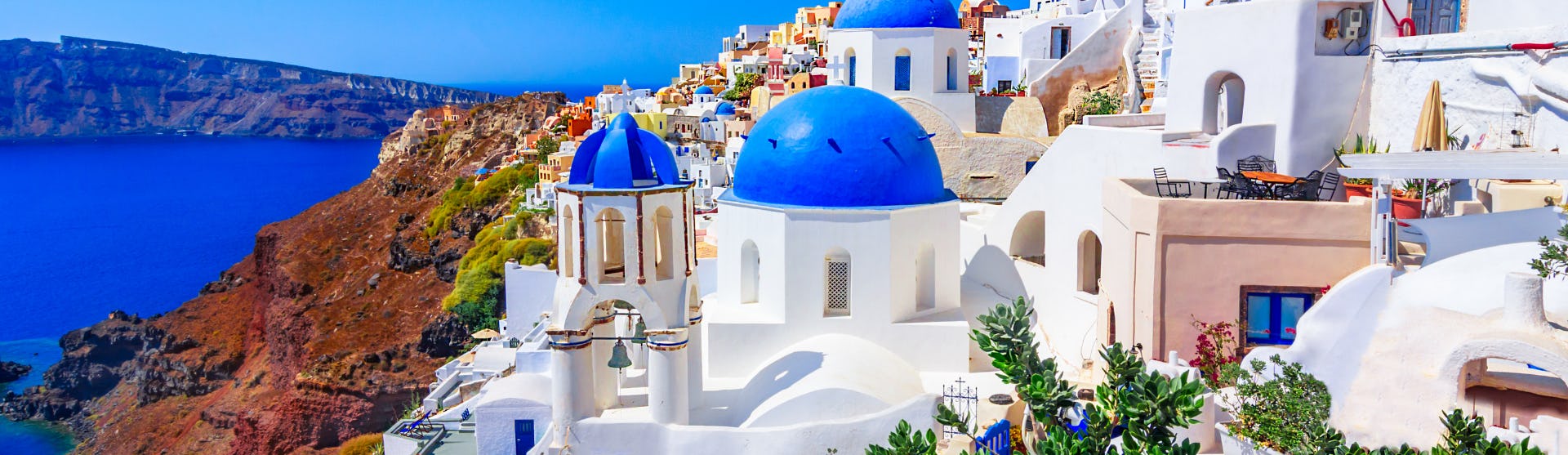 Högt beläget med en spektakulär utsikt ligger den charmiga byn Oia. Njut av charmiga kaféer och tavernor som serverar lokala specialiteter.