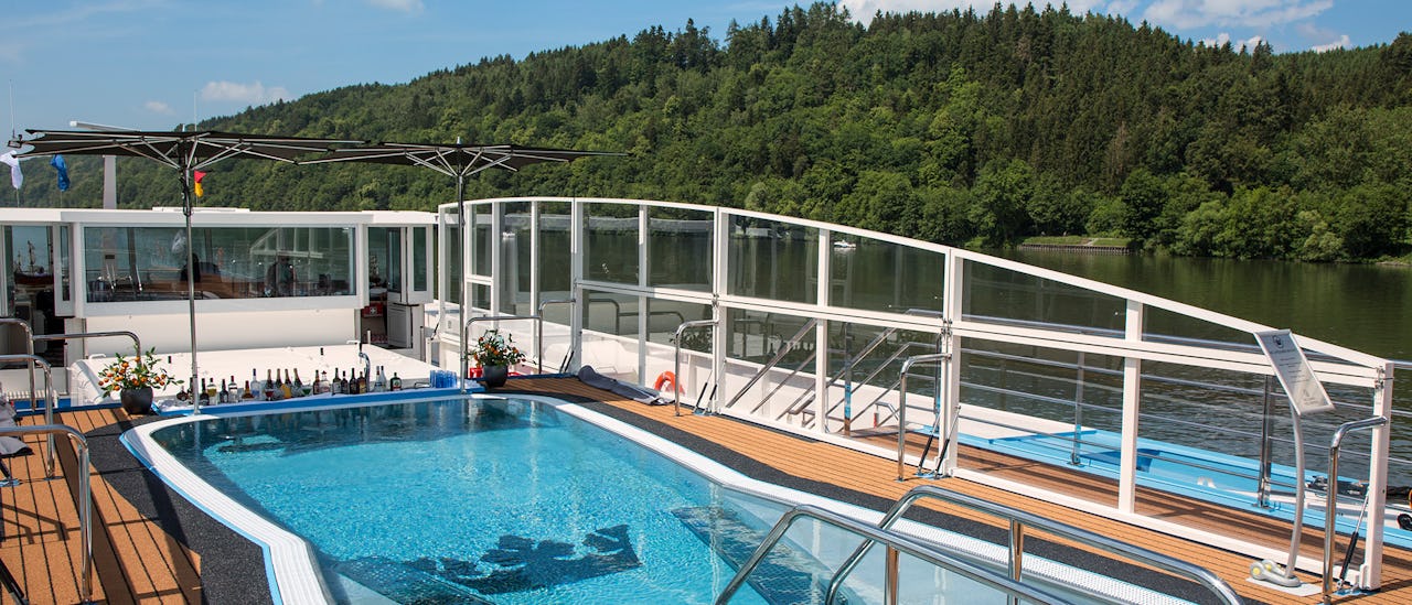Känn lugnet med en avslappnande massage eller ta ett dopp i poolen med en swim-up bar medan fartyget passerar sekelgamla slott, charmiga byar och andra fantastiska landskap.