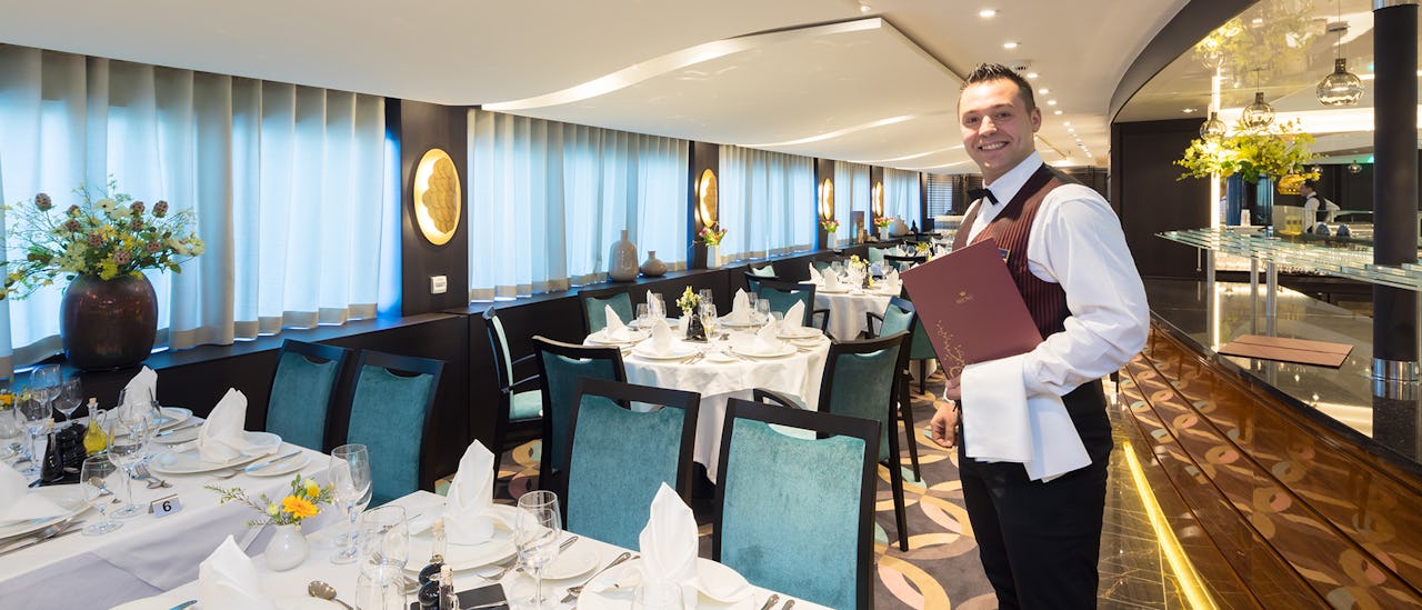 Avnjut läcker mat på olika restauranger ombord, inklusive huvudrestaurangen och Kockens bord. Du kan även beställa goda tapas mellan måltiderna i huvudloungen.