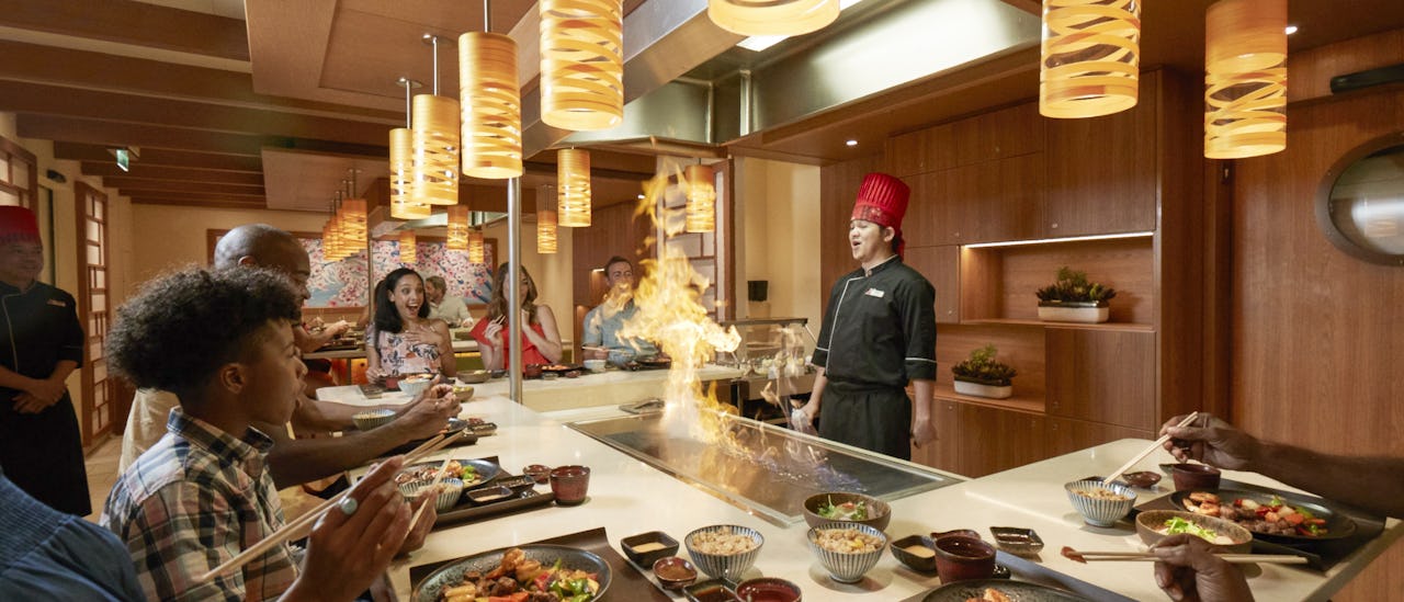 Ombord kombineras amerikanska menyer med smaker från hela världen. Många restauranger ingår, andra kostar extra.