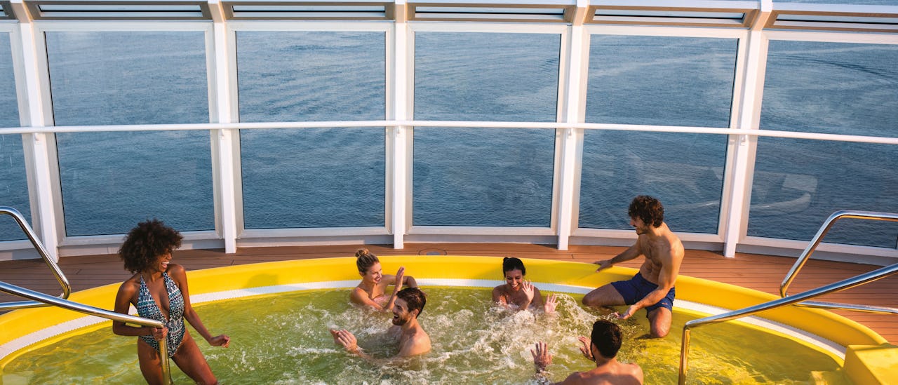 Sola, bada och koppla av på pooldäcket indelat i tre områden, varav ett med öppningsbart tak.