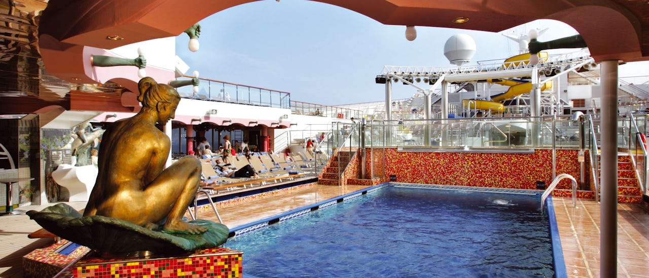 Sola, bada och koppla av på pooldäcket indelat i tre områden, varav ett med öppningsbart tak.