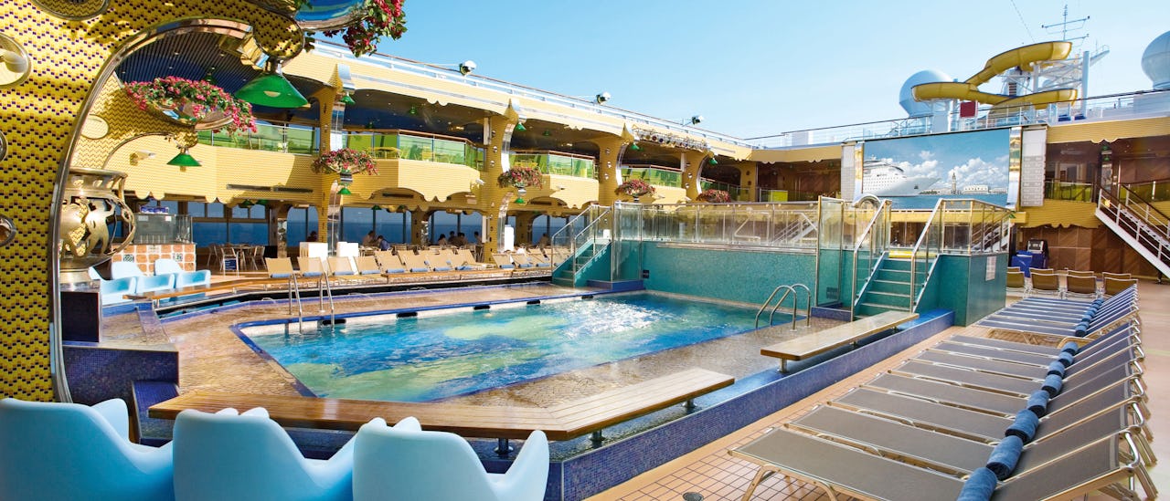 Sola, bada och koppla av på pooldäcket indelat i tre områden, varav ett med öppningsbart tak.