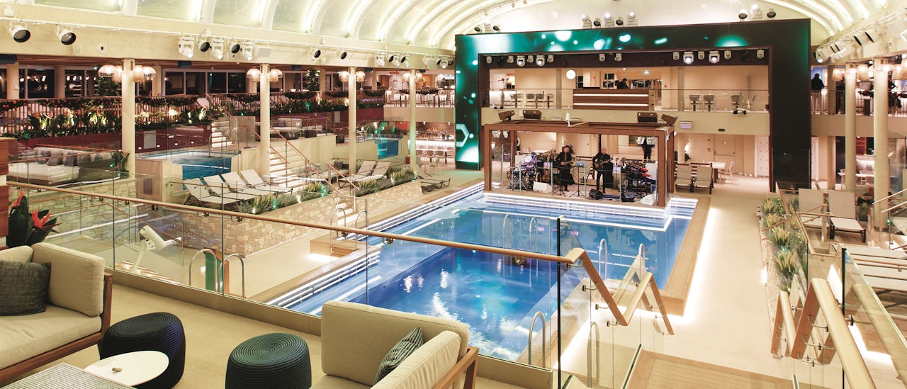 Välj mellan lounger, dansgolv och scener runt Piazza del Campo. Dessutom bjuds på poolpartyn, nattklubb och Las Vegas-inspirerade shower.