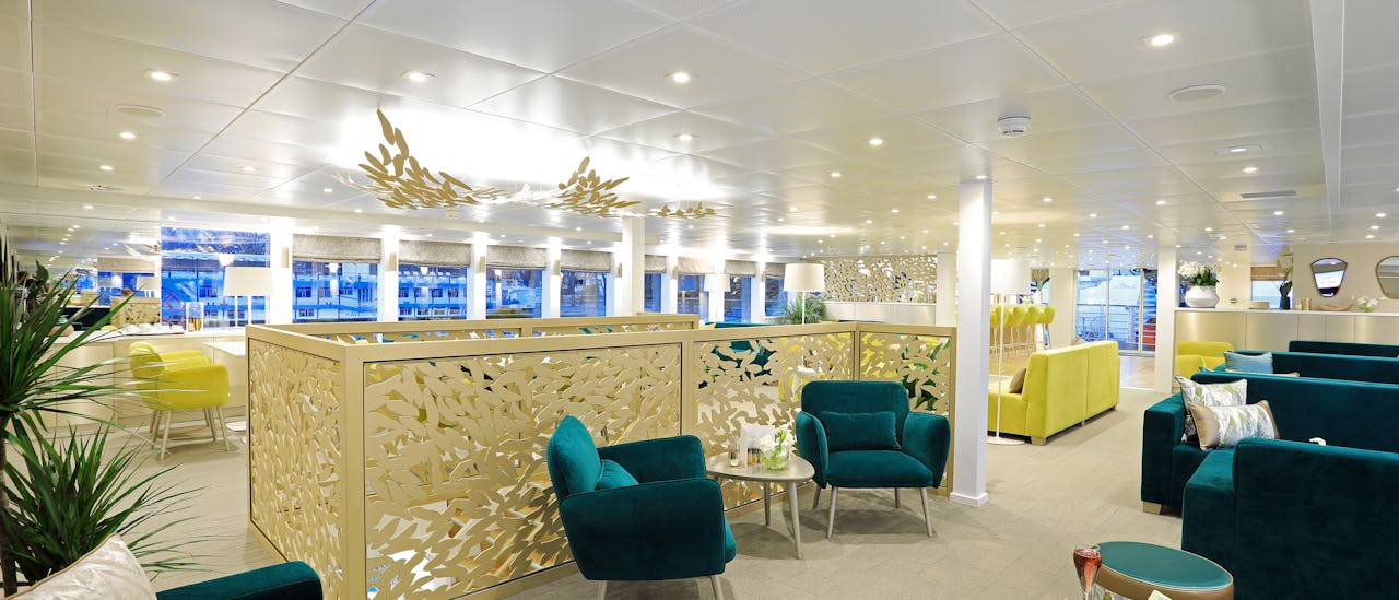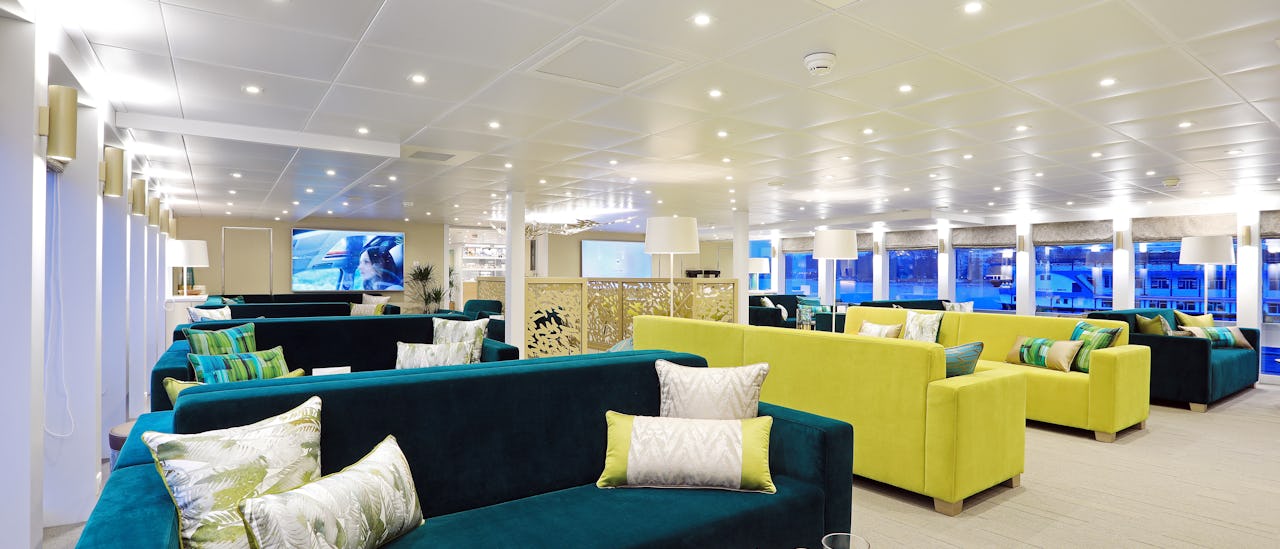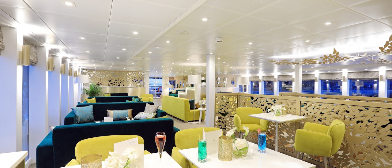 Loungen är smakfullt inredd och ligger på framsidan av fartyget och erbjuder panoramautsikt. Cocktails och spel, dans och andra former av underhållning sker här.