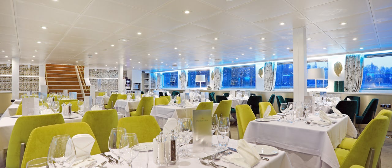 Alla måltider serveras i den stora matsalen och ger en informell men elegant atmosfär. Menyn består till största delen av det franska köket med några lokalt inspirerade rätter.