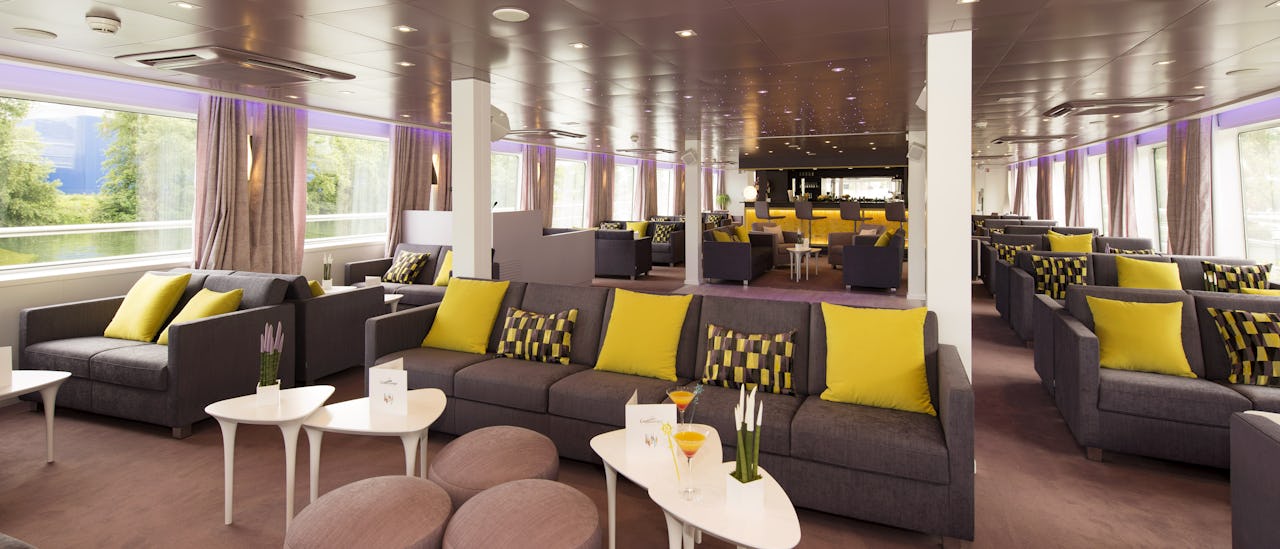 Den smakfullt inredda loungen ligger längst fram i fartyget och erbjuder panoramautsikt. Här kan du njuta av cocktails, spela spel, dansa och delta i olika former av underhållning.