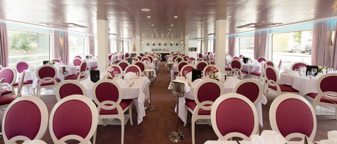 Huvudrestaurangen, belägen på huvuddäcket, är där alla måltider serveras. Restaurangen rymmer alla gäster vid bord i olika storlekar med panoramautsikt. Atmosfären är avslappnad men elegant.