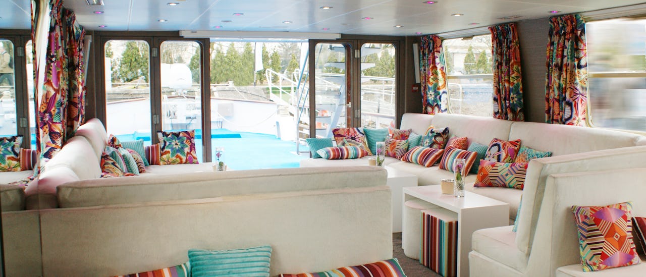 Den smakfullt inredda loungen ligger längst fram i fartyget och erbjuder panoramautsikt. Här kan du njuta av cocktails, spela spel, dansa och delta i olika former av underhållning.
