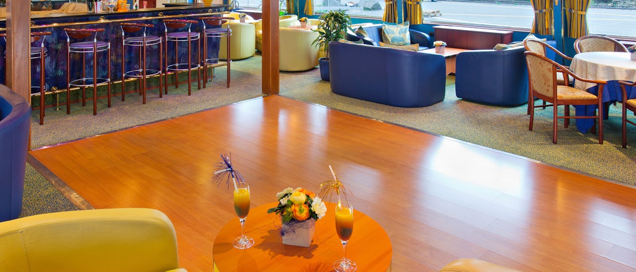 Den smakfullt inredda loungen ligger längst fram i fartyget och erbjuder panoramautsikt. Här kan du njuta av cocktails, spela spel, dansa och delta i olika former av underhållning.