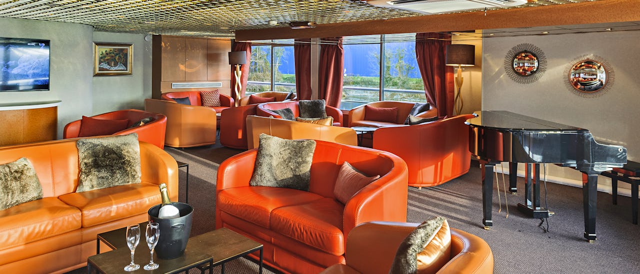 Den smakfullt inredda loungen ligger längst fram i fartyget och erbjuder panoramautsikt. Här kan du njuta av cocktails, spela spel, dansa och delta i olika former av underhållning.