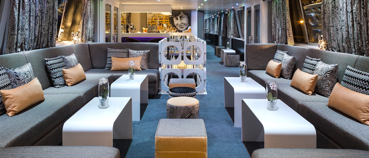 Koppla av, umgås och njut av utsikten. Huvudloungen erbjuder också panoramautsikt, cocktails, spel och andra avslappnade aktiviteter.