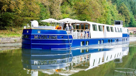 MS Madeleine färdas längs Marne-Rhine-kanalen.