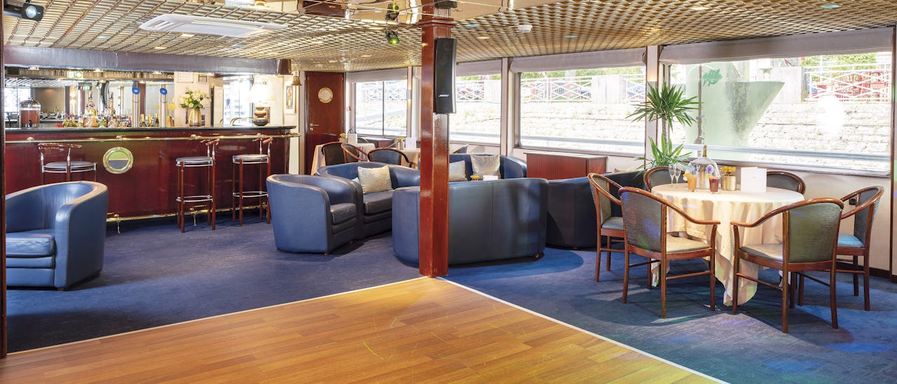 Den elegant inredda loungen ligger i fartygets för och erbjuder panoramautsikt. Här kan du njuta av cocktails, spel, dans och annan underhållning.