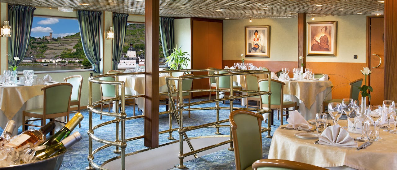 Huvudrestaurangen, belägen på huvuddäcket, är där alla måltider serveras. Restaurangen rymmer alla gäster vid bord i olika storlekar med panoramautsikt. Atmosfären är avslappnad men elegant.