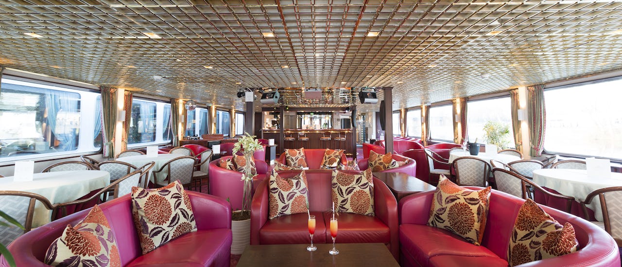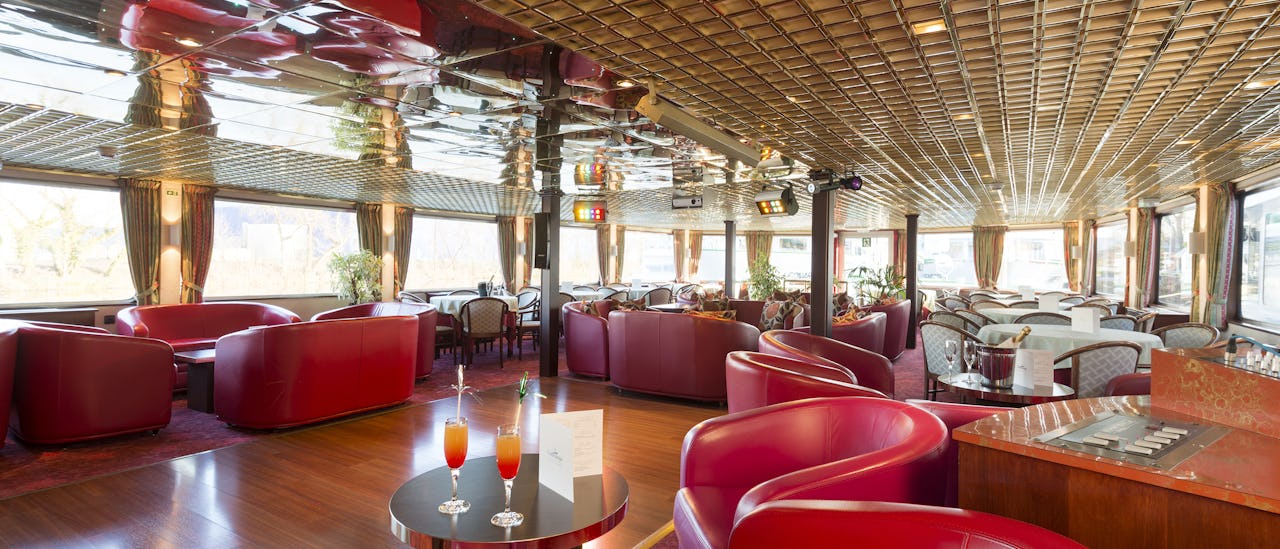 Den smakfullt inredda loungen ligger längst fram i fartyget och erbjuder panoramautsikt. Här kan du njuta av cocktails, spela spel, dansa och delta i olika former av underhållning.