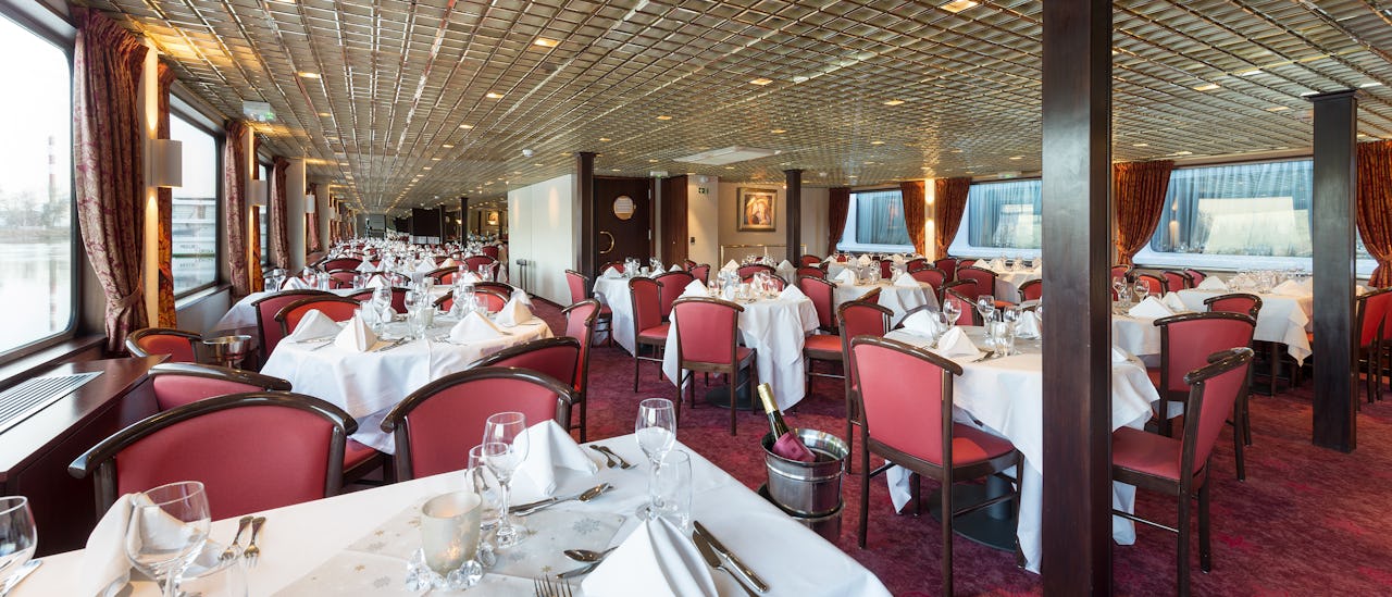Alla måltider serveras i huvudrestaurangen och skapar en avslappnad men elegant atmosfär.