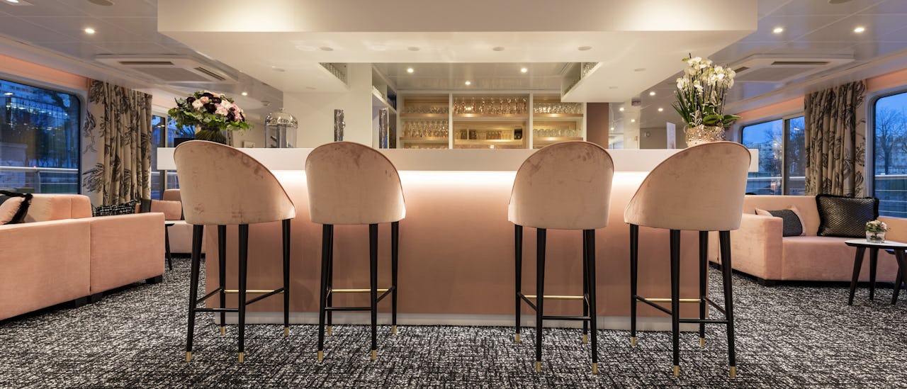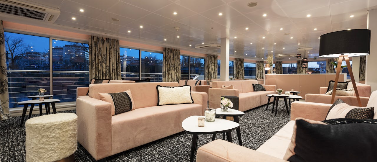 Lyssna på och dansa till livemusik i huvudloungen som ligger i fören på fartyget.
