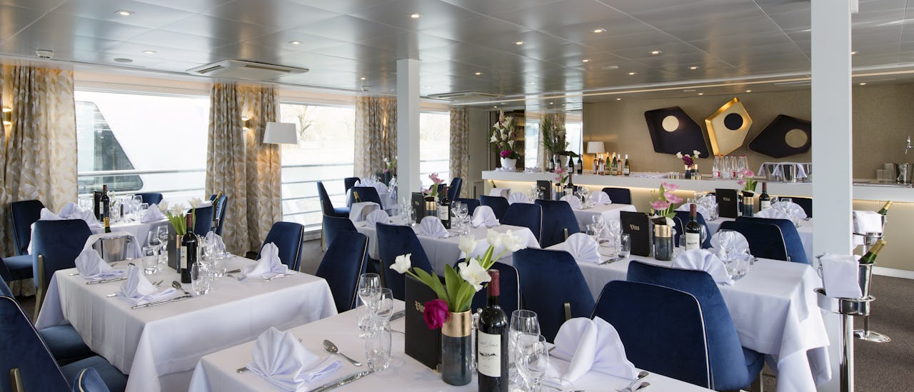 Restaurangen, som ligger på övre däck, är där alla måltider serveras under din kryssning. Atmosfären är avslappnad men elegant.