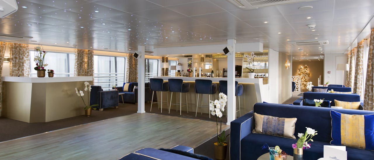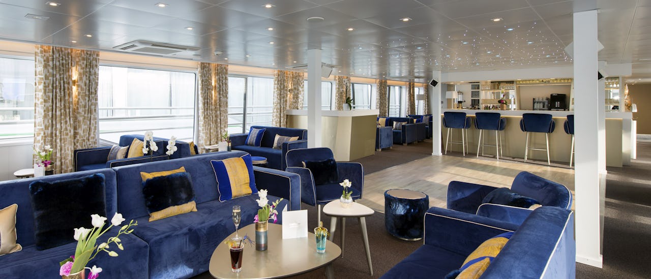 Den elegant inredda loungen ligger i fartygets för och erbjuder panoramautsikt. Här kan du njuta av cocktails, spel, dans och annan underhållning.