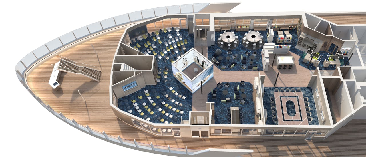 Koppla av i den eleganta Explorer-loungen, besök spa-avdelningen eller njut av landskapet från Infinitypoolen.