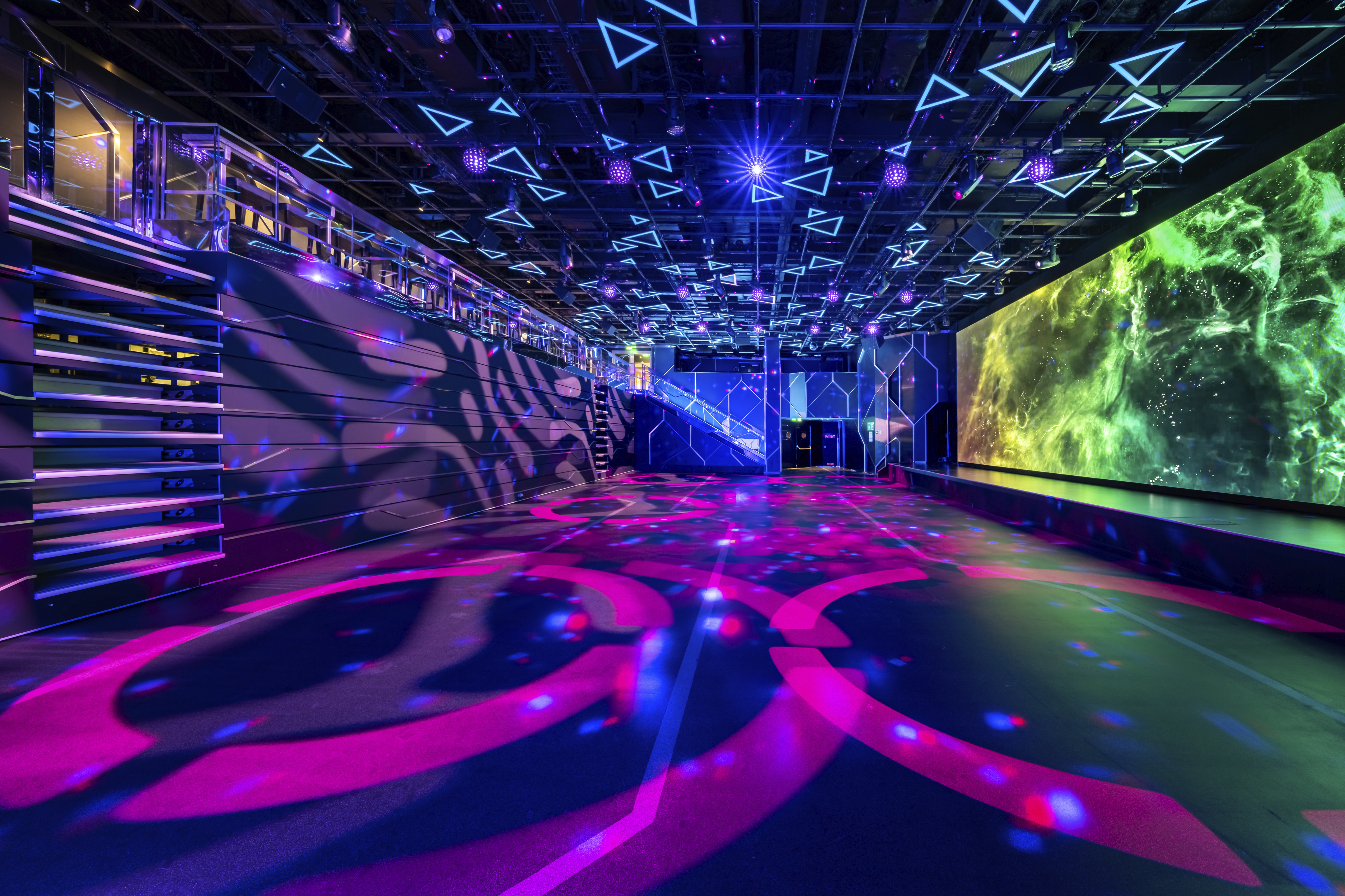 Strosa på den 104 meter långa inomhuspromenaden med den ikoniska LED Dome-skärmen!