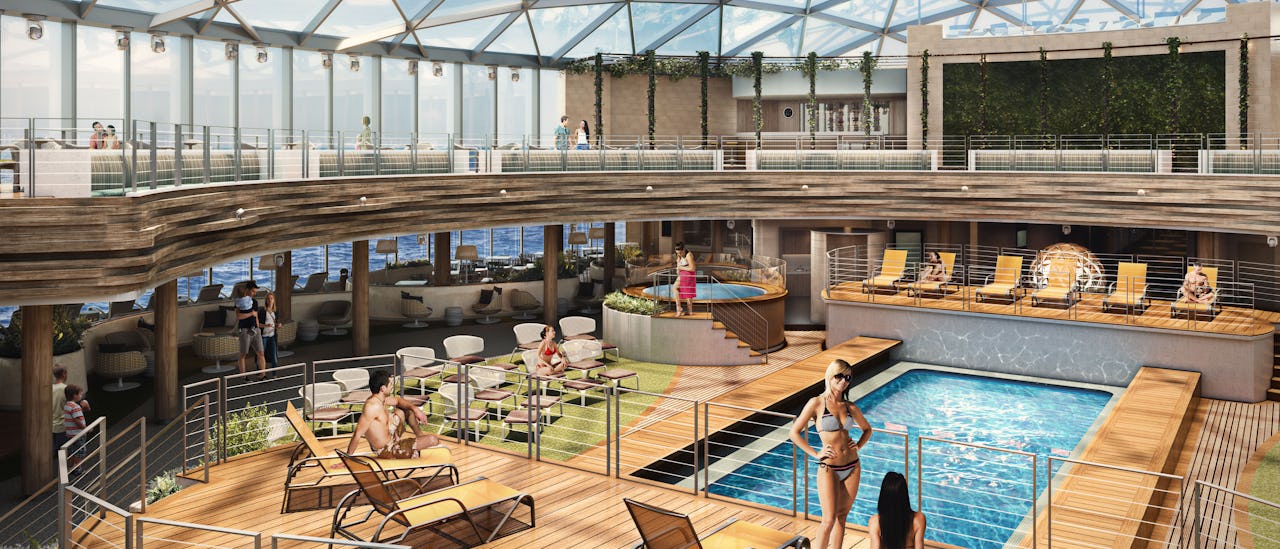 Kliv in i en av 4 poolerna och 16 jacuzzis på pooldäcket eller unna dig en massage på Oasis Spa.