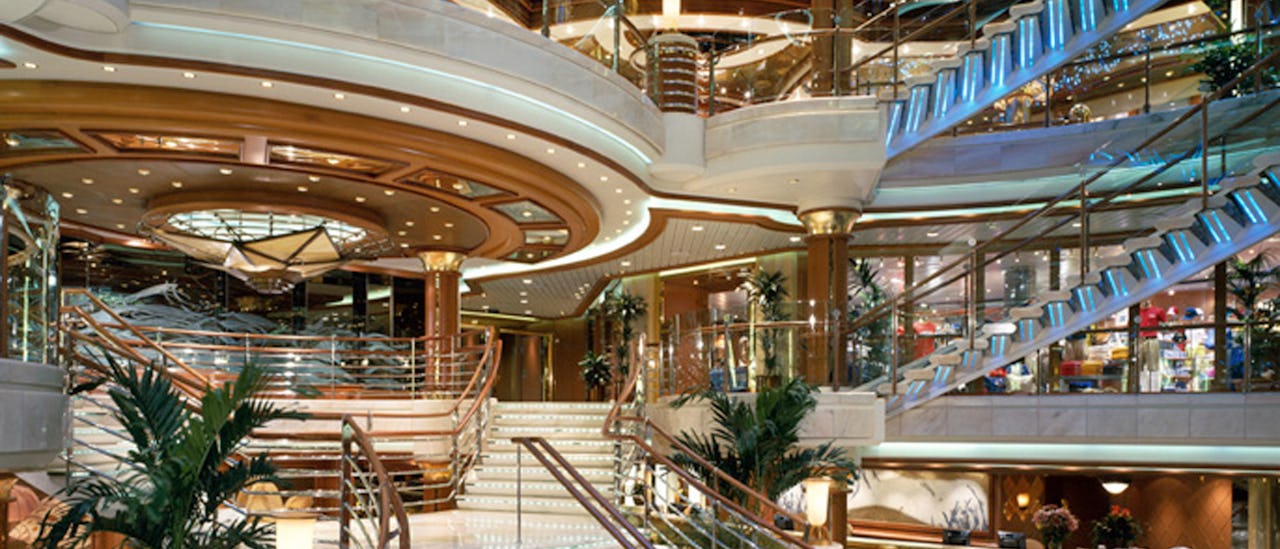 Ta en promenad genom fartygets mittpunkt, Piazzan, en plats som ständigt hålls vid liv av jonglörer, musiker och akrobater.