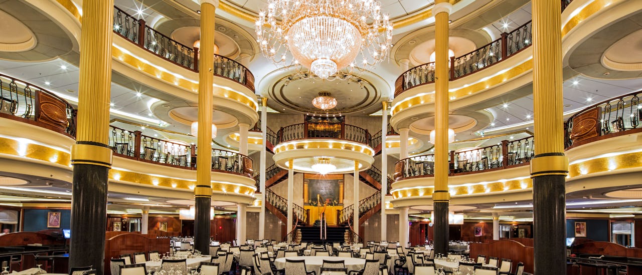 Den tre våningar höga á la carte-matsalen ingår liksom buffetrestaurangen Windjammer, pizzerian Sorrentos och Café Promenade.